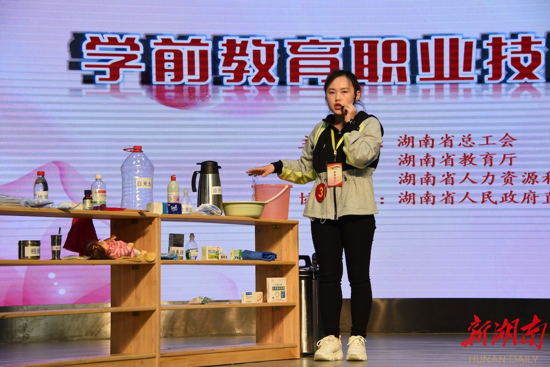 新湖南客户端12月13日讯(记者 郭芝桃)12月10日至13日,2019 年全省女职工学前教育职业技能竞赛在省政府直属机关第一幼儿院举行。经过初赛选拔的32名幼儿教师、25名保育员选手将进行巅峰对决。竞赛分幼儿教育教师专业技能、保育员专业技能两个科目进行,其中,幼儿教育教师专业技能竞赛项目分专业理论考试、基本技能考核、综合素质考查、现场教学与说课反思和答辩等环节;保育员专业技能竞赛项目分理论考试、幼儿故事讲述、自制玩教具、现场安全救护与卫生消毒技能演示等环节。