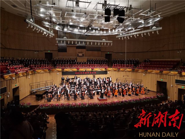 音乐会以一曲欢快热烈、高昂奋进的民族管弦乐《御风万里》拉开序幕,随后贝多芬《第五交响曲》把上半场演出推向高潮。下半场,女高音独唱《我爱你中国》、钢琴协奏曲《黄河》第四乐章、男声独唱《故土情》、唢呐独奏《百鸟朝凤》、女声独唱《卜算子·咏梅》、交响合唱《不忘初心》等经典曲目一一上演。演出在交响合唱《浏阳河》中落下帷幕。在观众经久不息的掌声中,乐团重返舞台,演奏经典曲目《歌唱祖国》并最终圆满落幕。