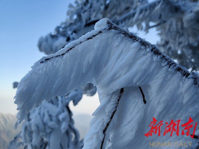 新湖南客户端12月2日讯(通讯员 颜文辉 陈杨剑 记者 邹娜妮)12月2日早上,天空放晴, 新化大熊山国家森林公园景区迎来了冰雪初晴景色。