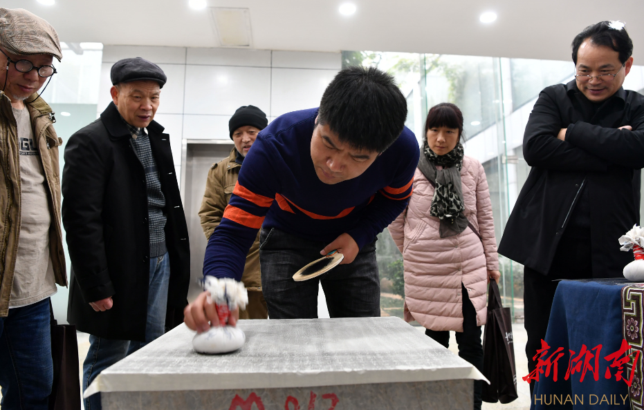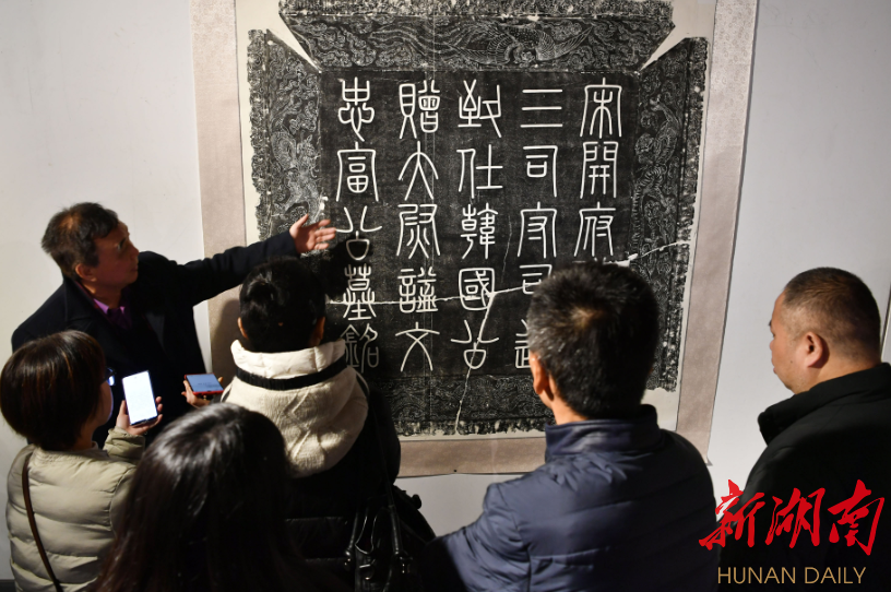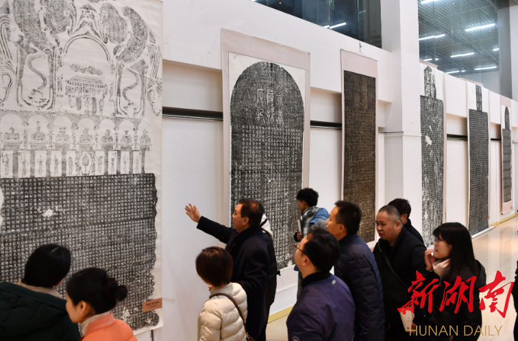 湖南日报·新湖南客户端1月3日讯(记者 龙文泱 摄影记者 郭立亮 通讯员 管震 王雅新) 西周毛公鼎全形拓、秦相李斯撰书所作《峄山碑》、武则天撰文并书丹的《升仙太子碑》、唐颜真卿撰书之《勤礼碑》……1月3日,由长沙市文化旅游广电局主办,长沙简牍博物馆和郑州市华夏文化艺术博物馆承办的“书道圭臬——中原巨碑名志拓片展”在长沙简牍博物馆开幕,196件上自史前、历经商周、下至明清的金石拓片,包含仰韶文化刻符、甲骨、青铜器、碑碣、墓志、画像石和摩崖刻石等多个种类,向人们展示了作为中华文明重要发祥地的中原地区书法的传承变迁。