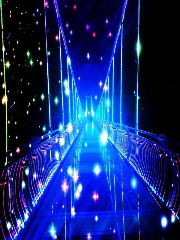 “为了让旅客感觉山鬼玻璃桥的惊险与刺激,还采用5D效果,游客走在上面,突然感觉玻璃“咔嚓”“咔嚓”之声,啊,桥‘碎’了。让人刺激心跳,尖叫不止”。左总介绍说。