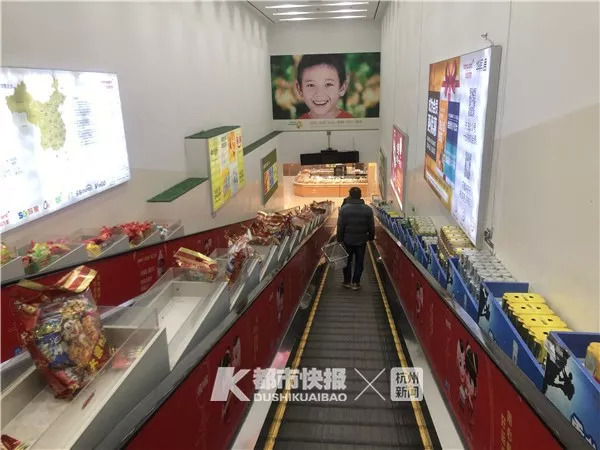 超市进口在3楼,不少新年包装的零食、干货礼包在打折促销,但选购的顾客寥寥无几。