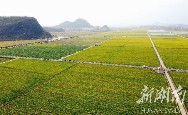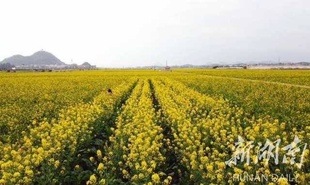 道县原地正和农场盛放的油菜花仿佛为大地盖上了金色的地毯。李胜全摄