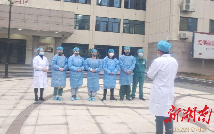 湖南日报·新湖南客户端2月8日讯(通讯员 姚智慧)2月7日清晨7点,华容县人民医院黎浊莺、陈阵、白昭彦、汪文苏、李家贝组成的5名ICU专科团队整装待发,在县新型冠状病毒感染的肺炎防控与医疗救治专病医院集结,准备奔赴岳阳市新型冠状病毒肺炎定点医院——君山医院,增援全市战“疫”的最前线。县人民医院党委副书记、副院长刘成新,院感科主任蔡玲霞为出征人员作动员。