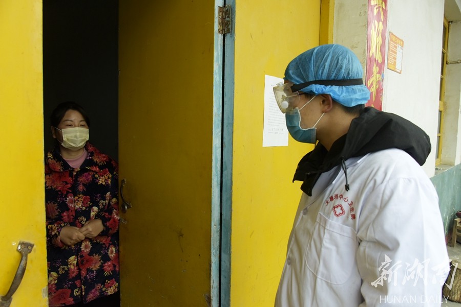 2月6日,澧县大堰垱镇亘山村,胡粤向被隔离对象了解情况。