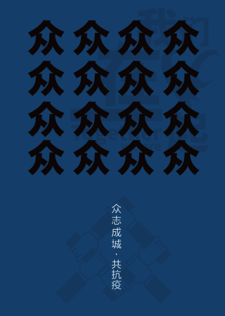 作品说明:此幅作品以众多“众”字为元素设计,表达众志成城共抗疫的坚定信念。