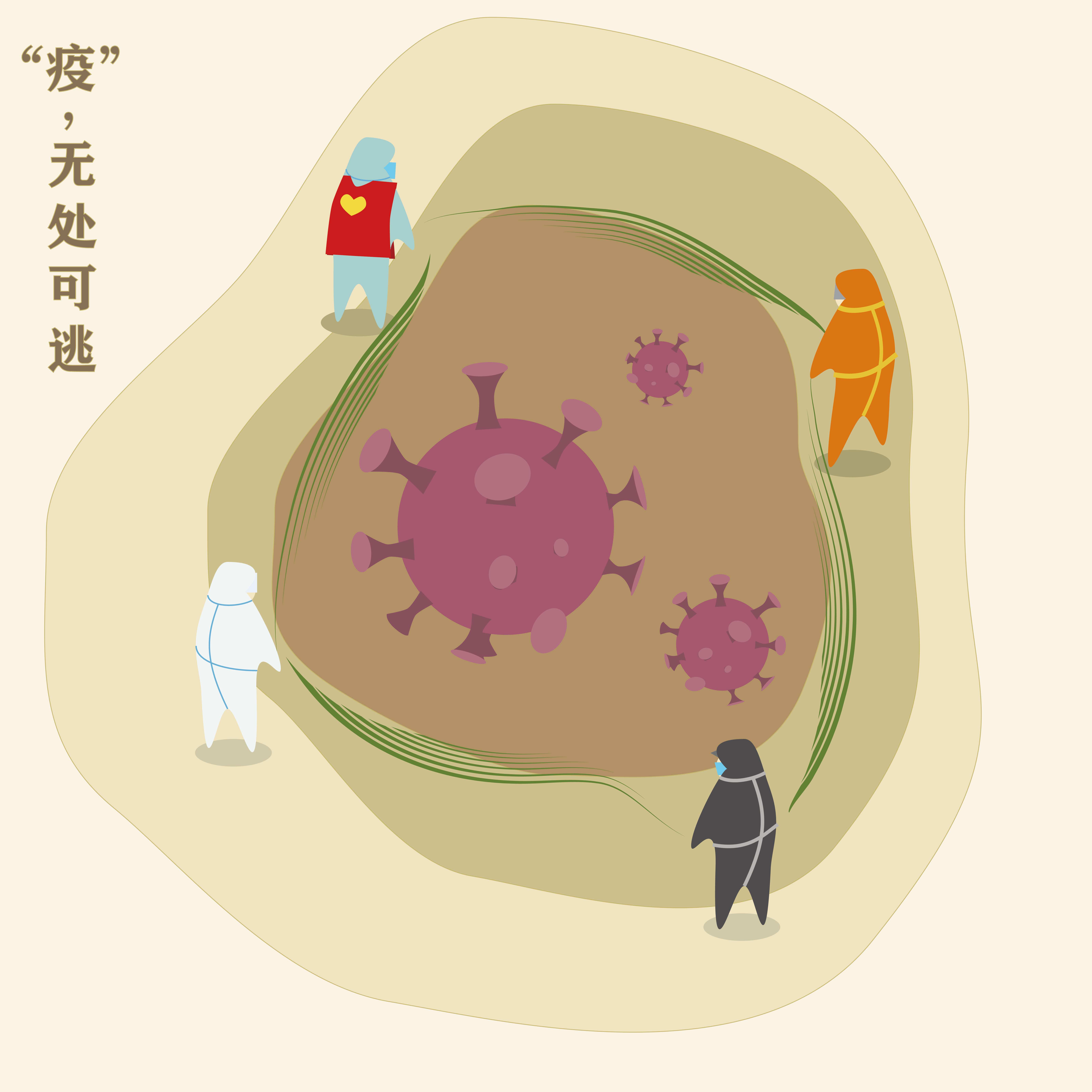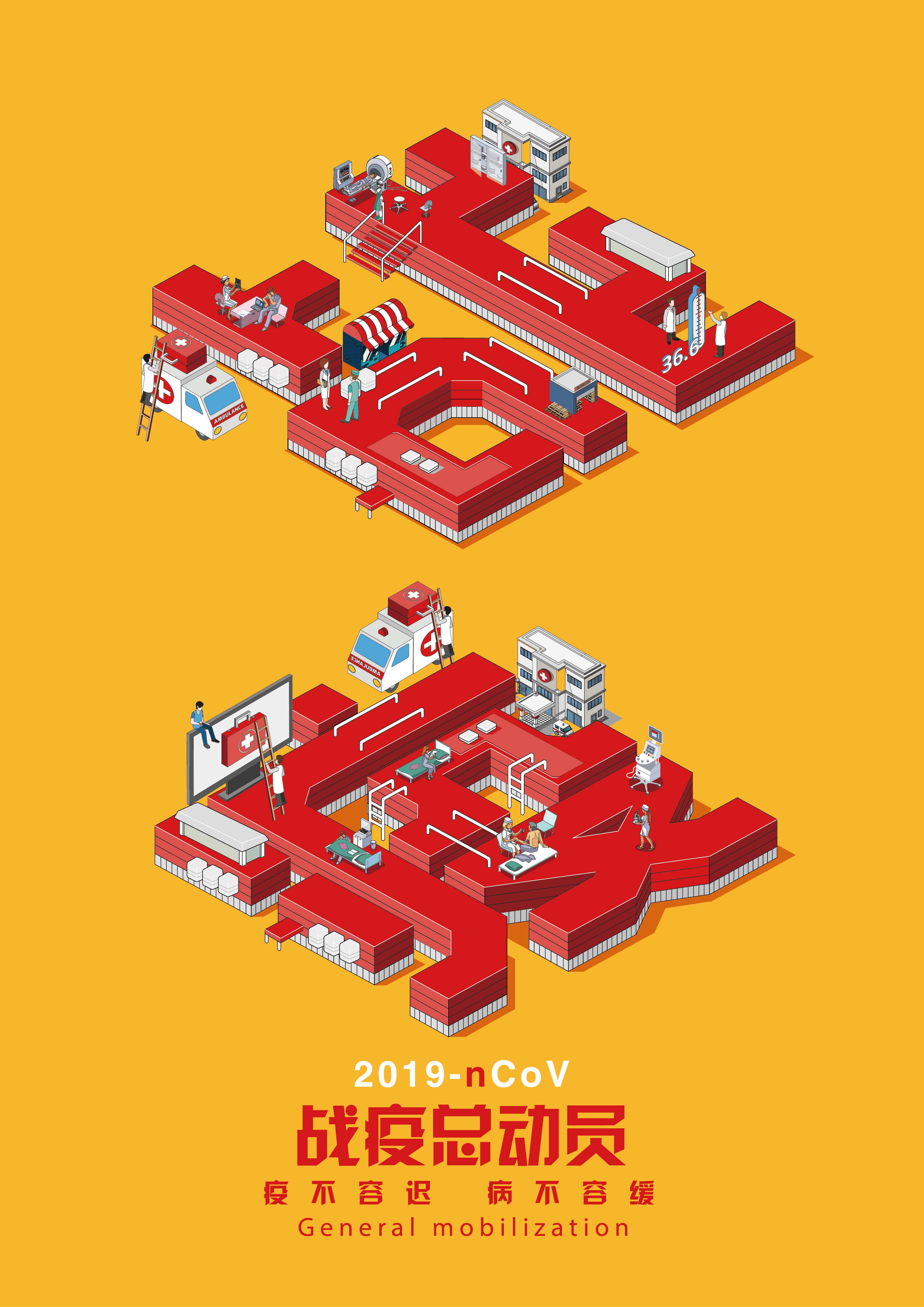 作品说明:哪来的岁月静好,哪来的天佑,疫情面前责任重于泰山,疫情当前,考验的不仅是一座城,更是人心。海报以疫情两个字的字体为主要表现形式,主要描绘奋斗在一线的医护人员、警察和解放军,描述众志成诚,全城抗疫的宏大场面。以疫不容迟、病不容缓的主题从画面上体现一线工作人员紧张有序的战斗场景。以此致敬所有奋斗在一线的工作者。