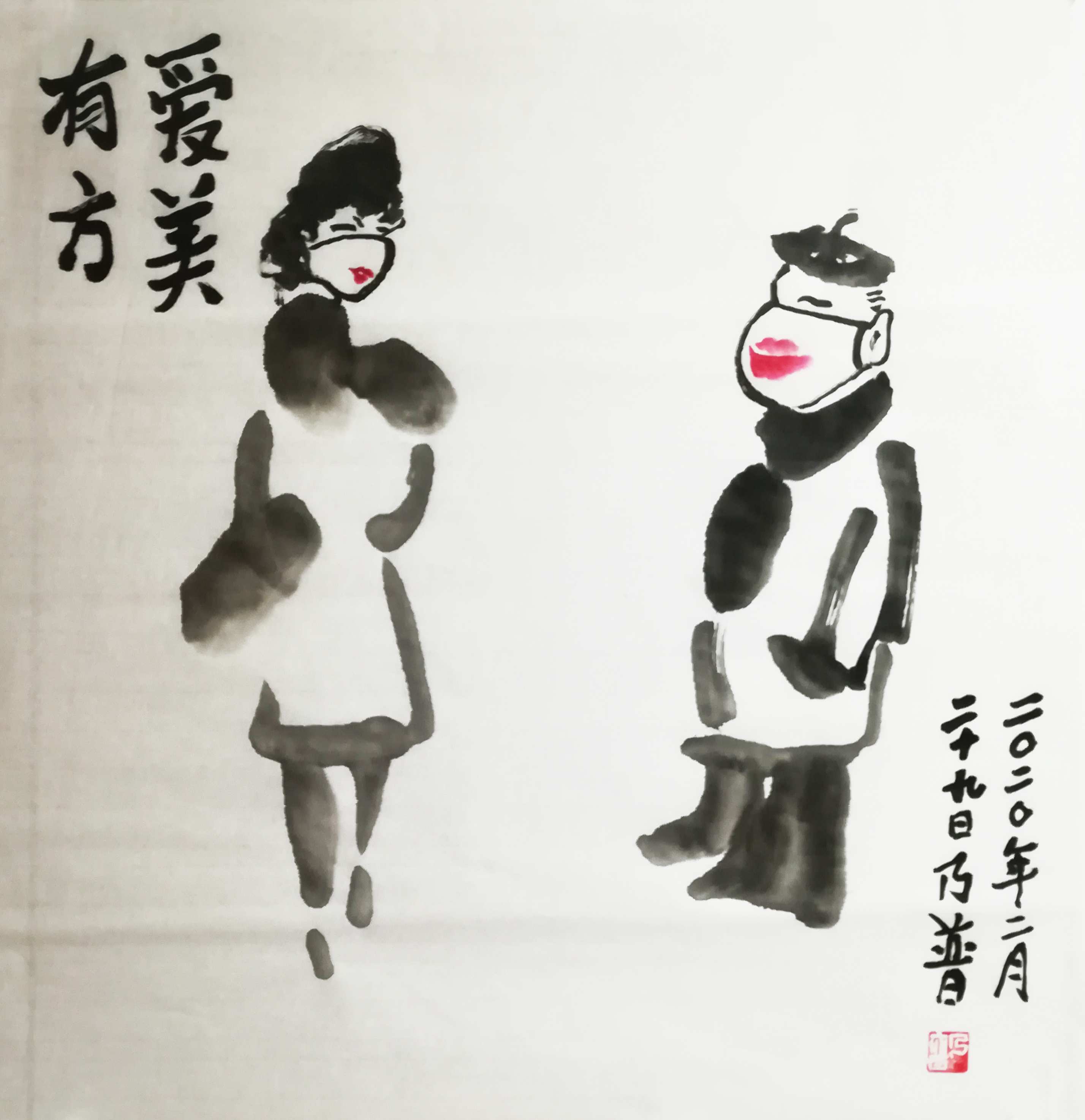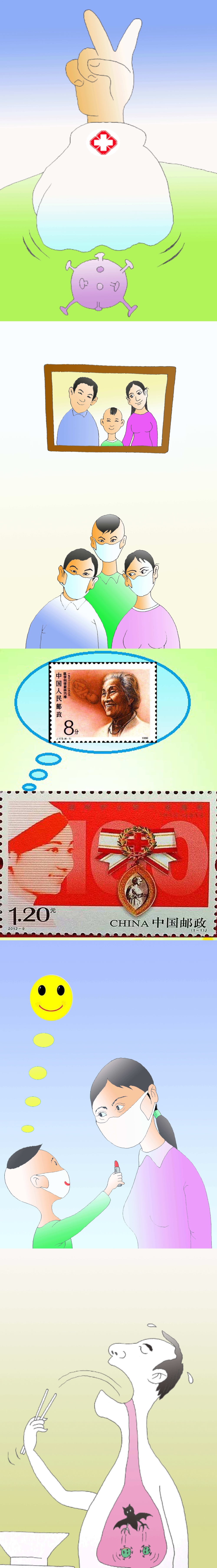 作品说明:用幽默的手法表现戴口罩。