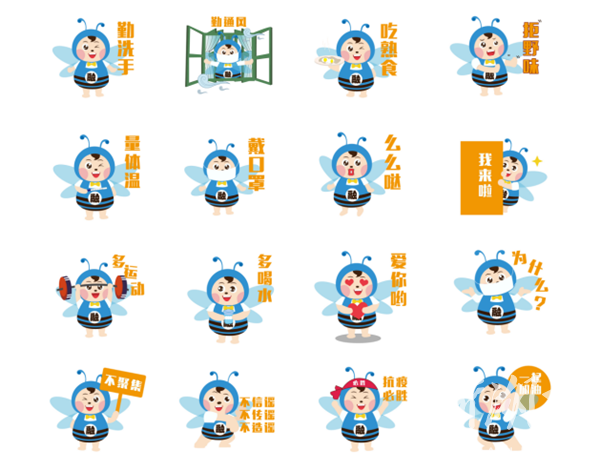设计创作者彭仙君和文奇介绍说:“作为抗疫宣传的一名轻骑兵,必须为抗击疫情做点事,所以选取了比较萌、老小辨识度都高的卡通小蜜蜂。”这组表情包共16款,防疫表情包的原型是冷水滩区融媒体中心出品的卡通形象代言小蜜蜂“融融”,象征冷水滩区融媒体中心的新闻记者像蜜蜂一样勤劳肯干、团结互助、默默奉献。作为永州地区首家建成的县级融媒体中心,冷水滩区融媒体中心站在新时代的起点上,肩负着“融”媒体、“汇”能量,服务群众、引导群众的责任和使命。