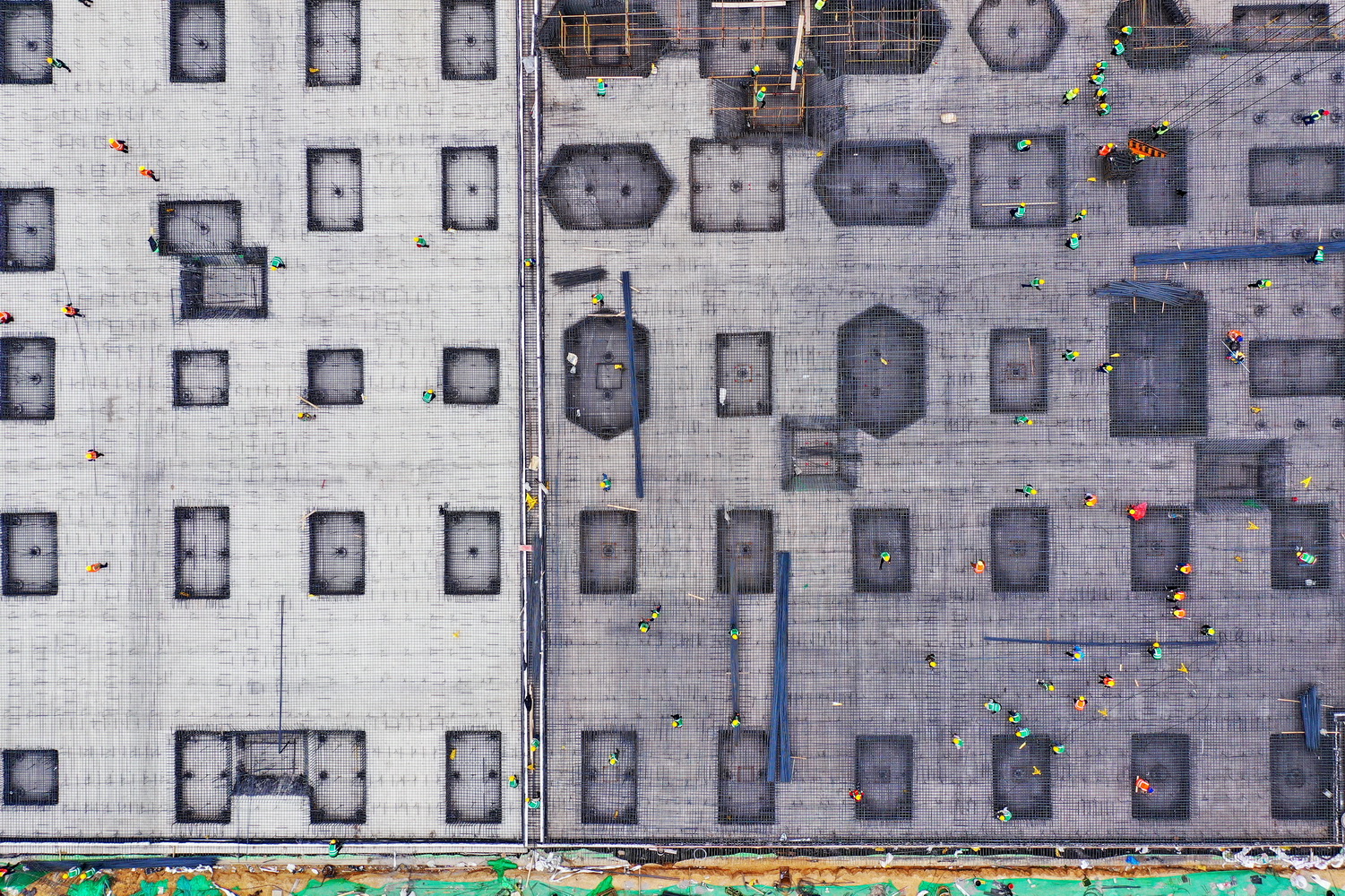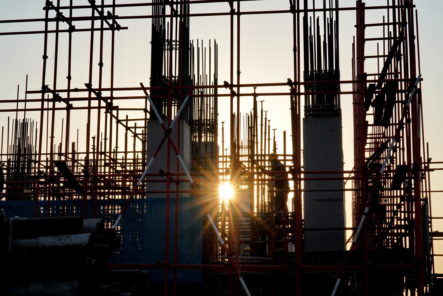 两个多月来,面对突如其来的疫情,雄安新区1000多个基层党组织闻令而动,1万多名党员投入到防疫一线。 图为工人在雄安新区商务服务中心建设现场施工。