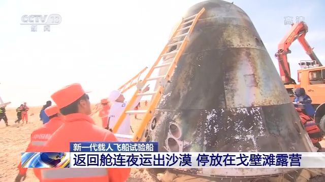 我国新一代载人飞船试验船返回舱连夜运出沙漠 停放在戈壁滩露营