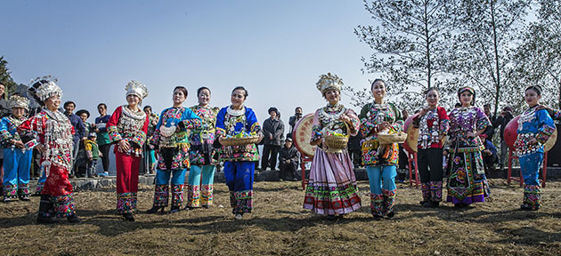 精准扶产业。按照“四跟四走”思路,组建农旅等8个专业合作社。图为2016年2月,游客在贫困户施俊经营的“农家乐”品尝苗家“长龙宴”。