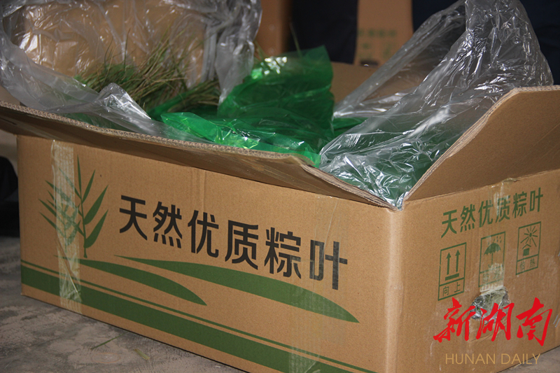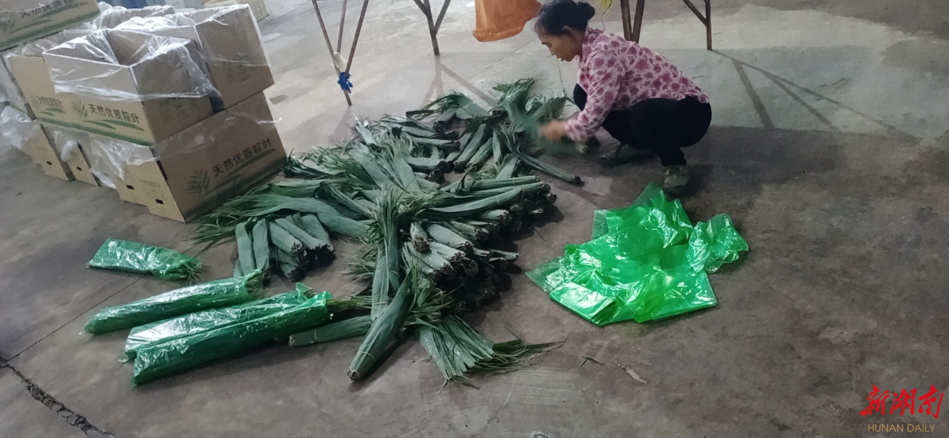 惠农服务中心收购农户采摘的粽叶后随即进行整理和入库冷冻,再发往江浙等各大城市销售。