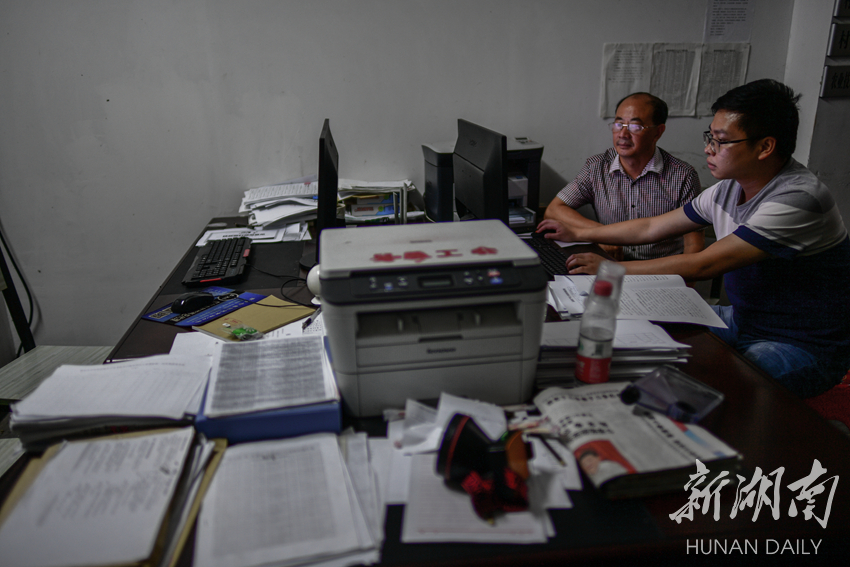 驻村扶贫队员在整理当天的资料。