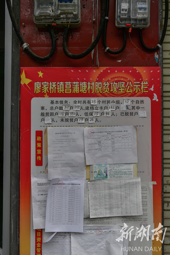 菖蒲塘村委会在村部门口及时公布相关政策、精准扶贫进度、项目资金管理。
