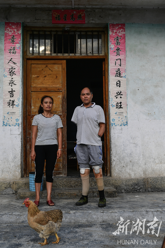 周立军(右一)在一次施工中,不幸被高压电击伤致残,双脚双手截肢。两个孩子,大的15岁,高一了,小的10岁,4年级了,小孩高中教育补贴3000元年,小学教育补贴1500元年,通过互助五兴,邻居田茂燕帮助他家两亩地种上了猕猴桃,年收入1.8万元,实现了脱贫。