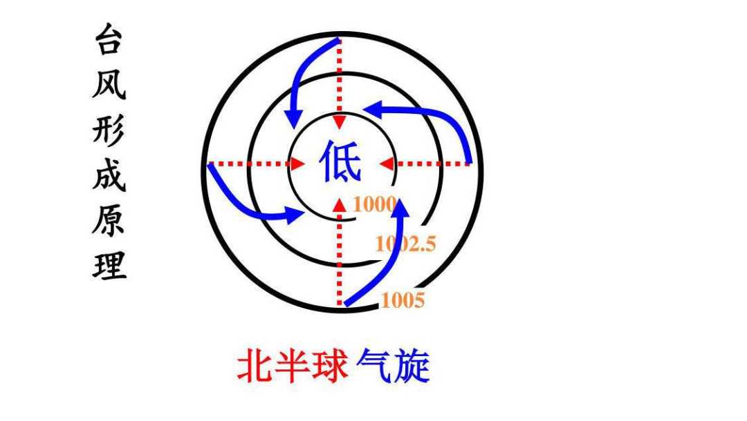 再加上地转偏向力的影响,此时就会形成漩涡状的台风。其中北半球呈逆时针旋转,而南半球呈顺时针旋转。