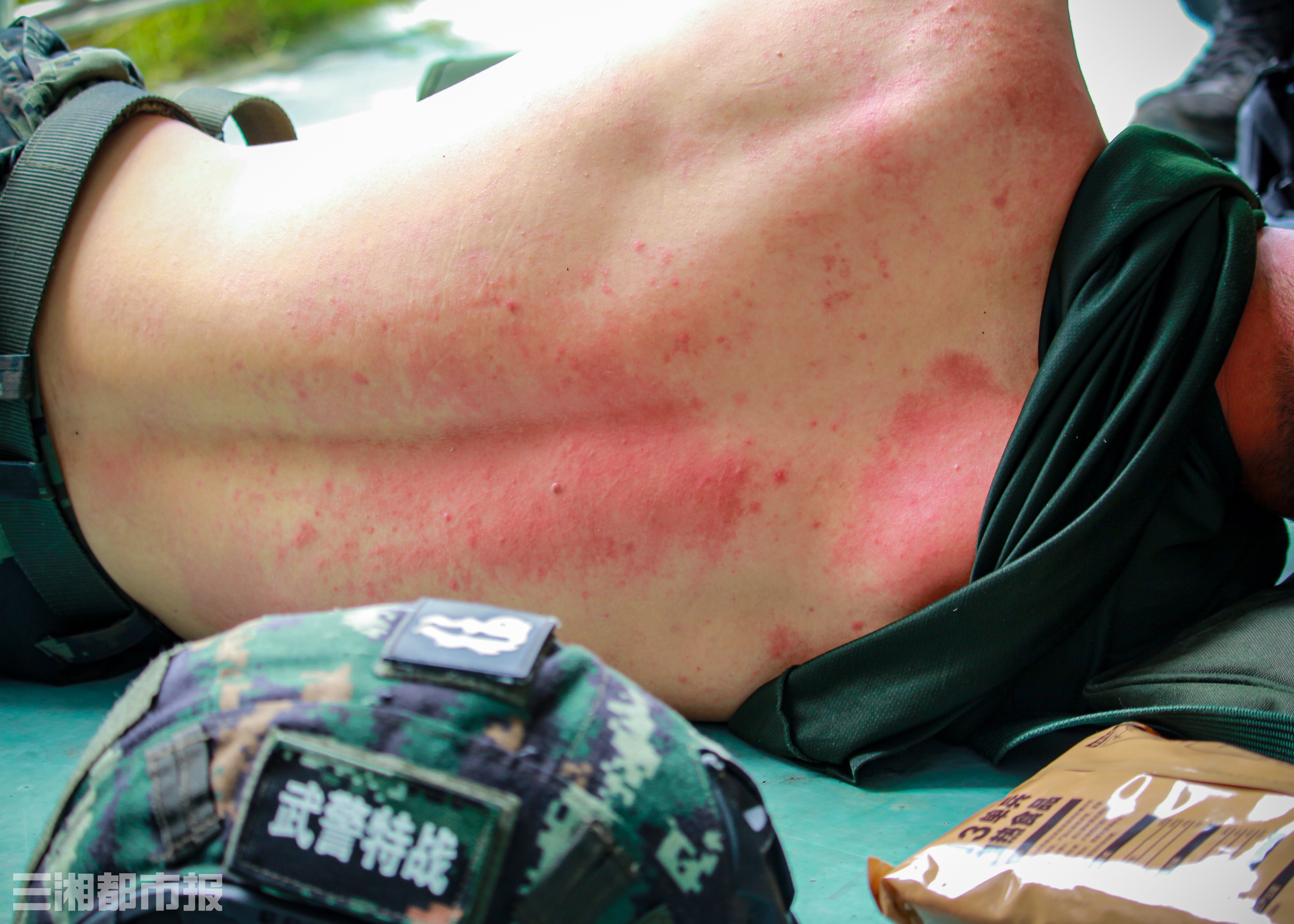 午休时间,一名满背痱子的队员辗转反侧。(拍摄者:吴春彤)