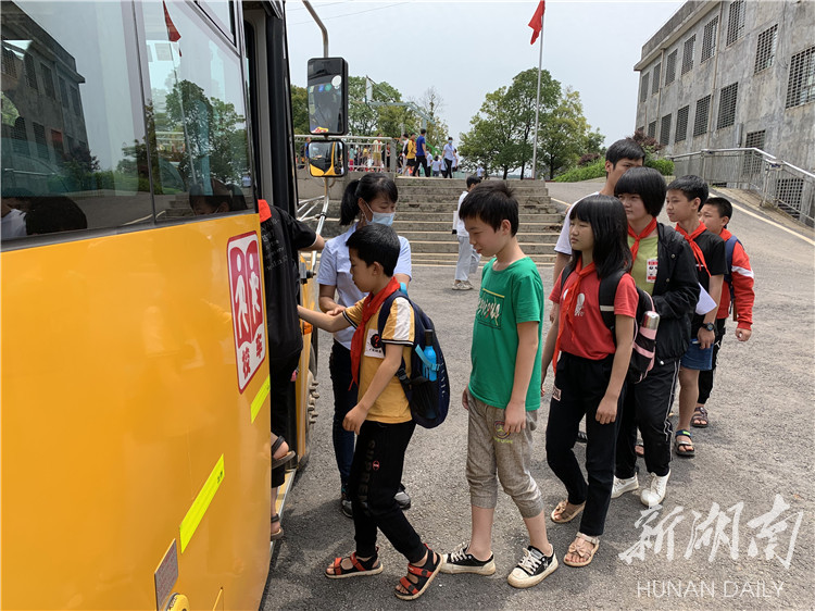 5月29日下午3时,随着一阵下课铃声响起,安仁县牌楼中心小学的操场顿时热闹起来,231名学生在老师的引导下,整齐、有序坐上校车准备回家。