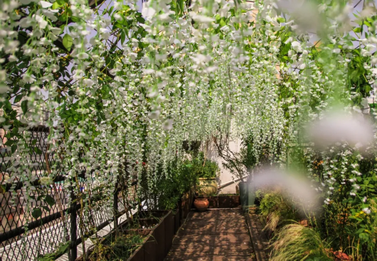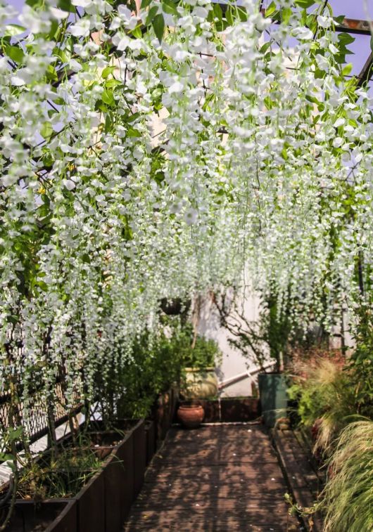 花园深处,还有一片“白色紫藤隧道”,在里面行走就好像仙境般梦幻。
