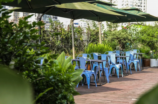 而这片空中花园就位于建筑的最顶层5楼,整整坐拥500平方米的露天天台。
