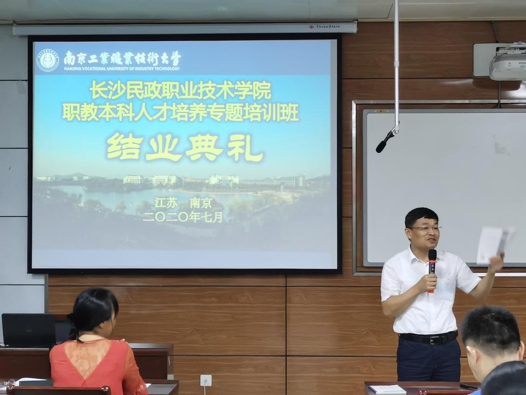 7月17日上午,长沙民政职院职教本科人才培养专题培训学习班结业典礼在南京工业职业技术大学举行。校长李斌、副校长唐春霞、副校长李科等出席结业典礼。教务处、科研处、实训管理中心(校企合作办)、质量监控处(督导室)和各二级学院负责人以及老年服务与管理、现代殡葬技术与管理专业群内各专业带头人、系主任等45位学员参加结业典礼。结业典礼由教务处处长罗勇主持。