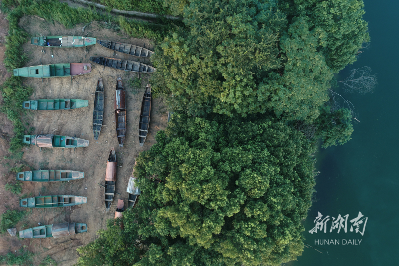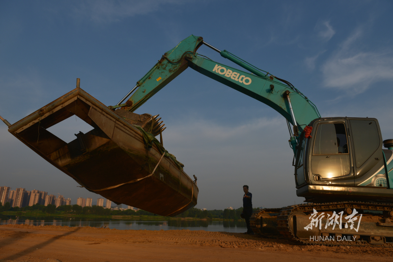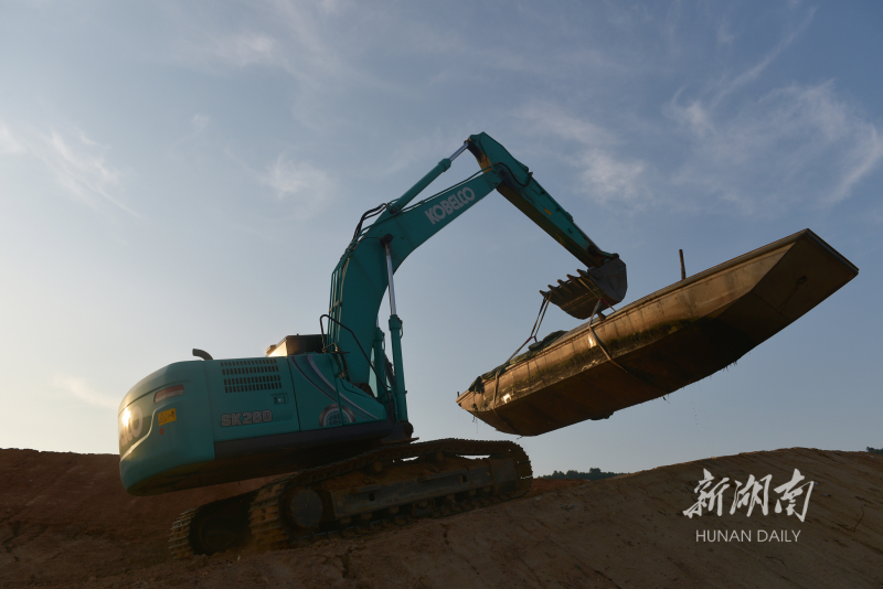 7月25日,衡东县吴集镇杨梓坪村,挖掘机将渔船从湘江支流洣水河里吊上岸。当天,该村开展渔船集中封存作业,目前,该县已经完成湘江衡东段水域、洣水衡东段水域、永乐江衡东段水域近千条渔船的清零工作。肖亚辉 摄