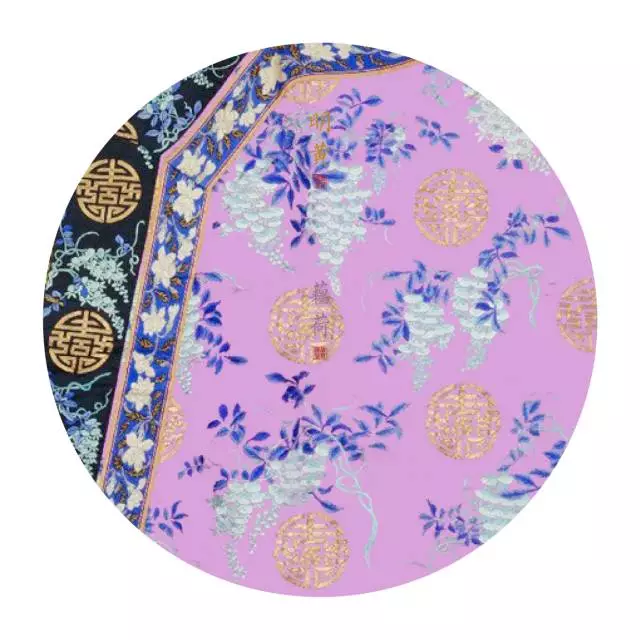(藕荷色缎绣折枝藤萝纹夹衬衣 局部)