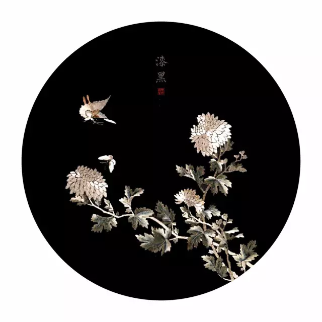 (黑色绸绣菊花双蝶图竹柄团扇 局部)