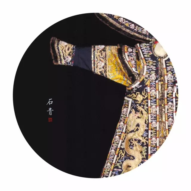 (石青缎绣金龙扣珠朝褂袍 局部)