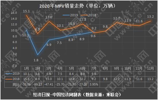 2020年的竞争进入下半程,MPV市场终于迎来了自2016年12月以来的首个同比增长。乘联会数据显示,7月MPV市场销量为9.6万辆,同比增长4.0%,环比增长8.3%;1-7月,MPV市场累计销售53.2万辆,同比下降33.07%。