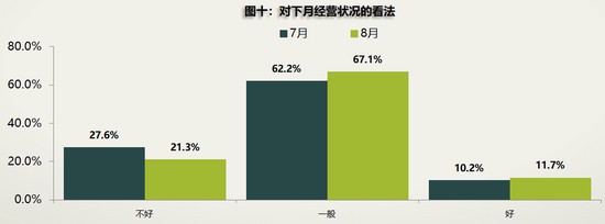 进入7月,许多地方刺激政策效果开始减弱,二季度促销活动透支了部分消费者购车需求。与此同时,南方又进入雨季,多地发生洪涝灾害,新疆、辽宁等地疫情出现反复,加上车企对经销商的压货,都直接导致经销商库存压力增加。因此,经销商对8月市场需求以及自身经营状况的判断总体上略显悲观。