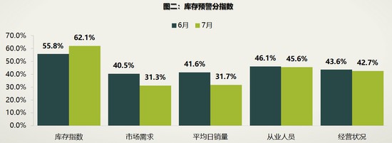 流通协会表示,7月,消费者市场需求有所下滑,以致经销商库存指数环比上升6.3个百分点,经销商平均日销量及经营状况则环比呈现不同程度下滑。