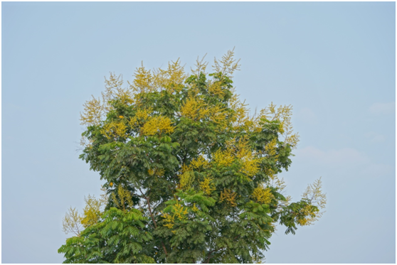 观察笔记:现在马路上两旁有不少高大的行道树开满了黄色花,那是复羽叶栾树,也是初秋时节最美丽的树。它是秋天的信使,满树鲜花的绽放,正向世界告知秋天的到临。