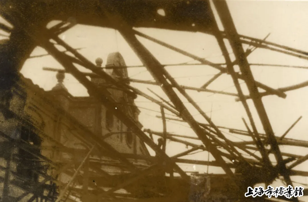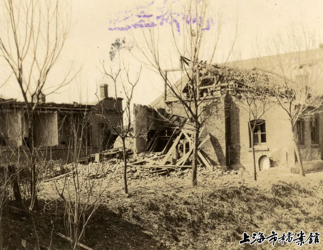 未毁前的东方图书馆及被毁后的商务印书馆(上海市档案馆藏)