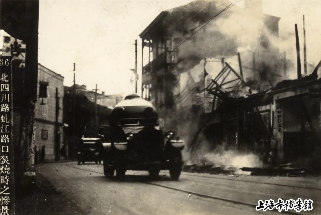 北四川路虬江路口焚烧之惨状(上海市档案馆藏)