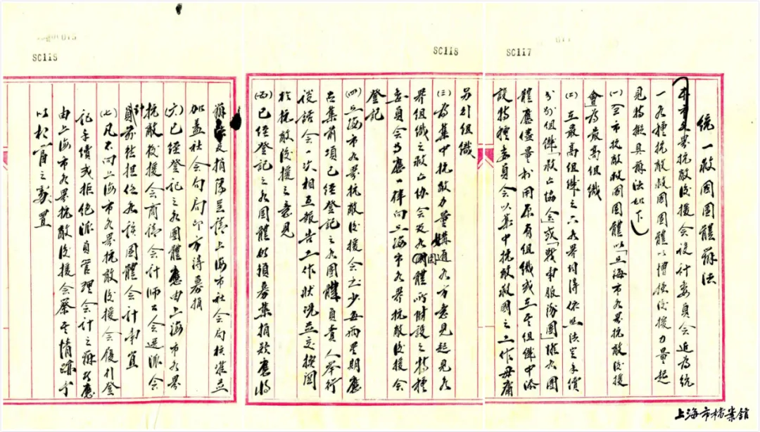 1937年,上海市各界抗敌后援会主席团拟定的统一救国团体办法(上海市档案馆藏)