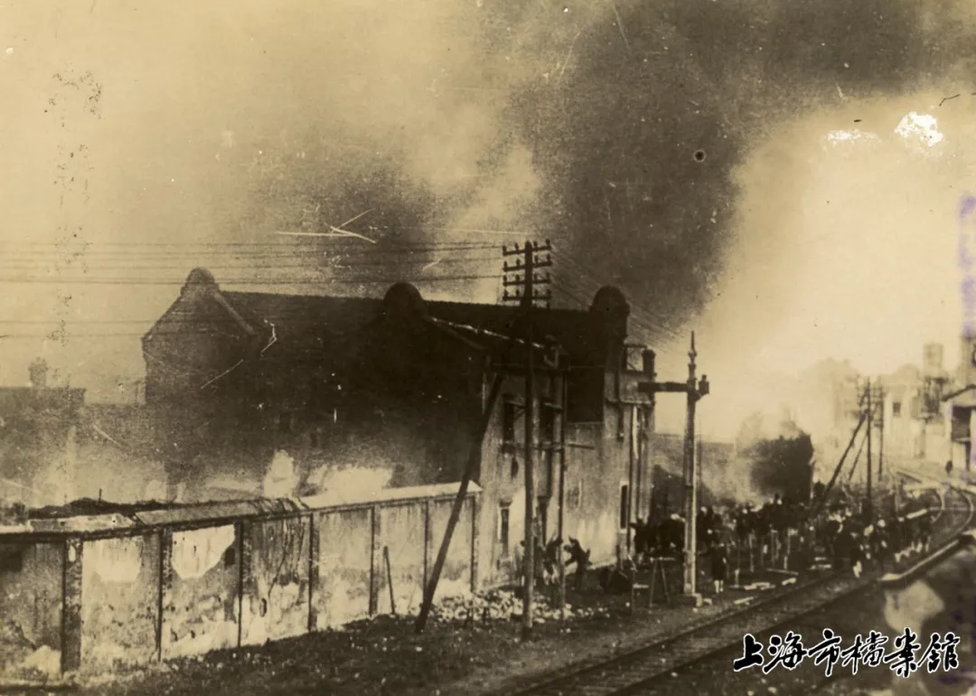 被纵火焚烧的淞沪铁路一带(上海市档案馆藏)