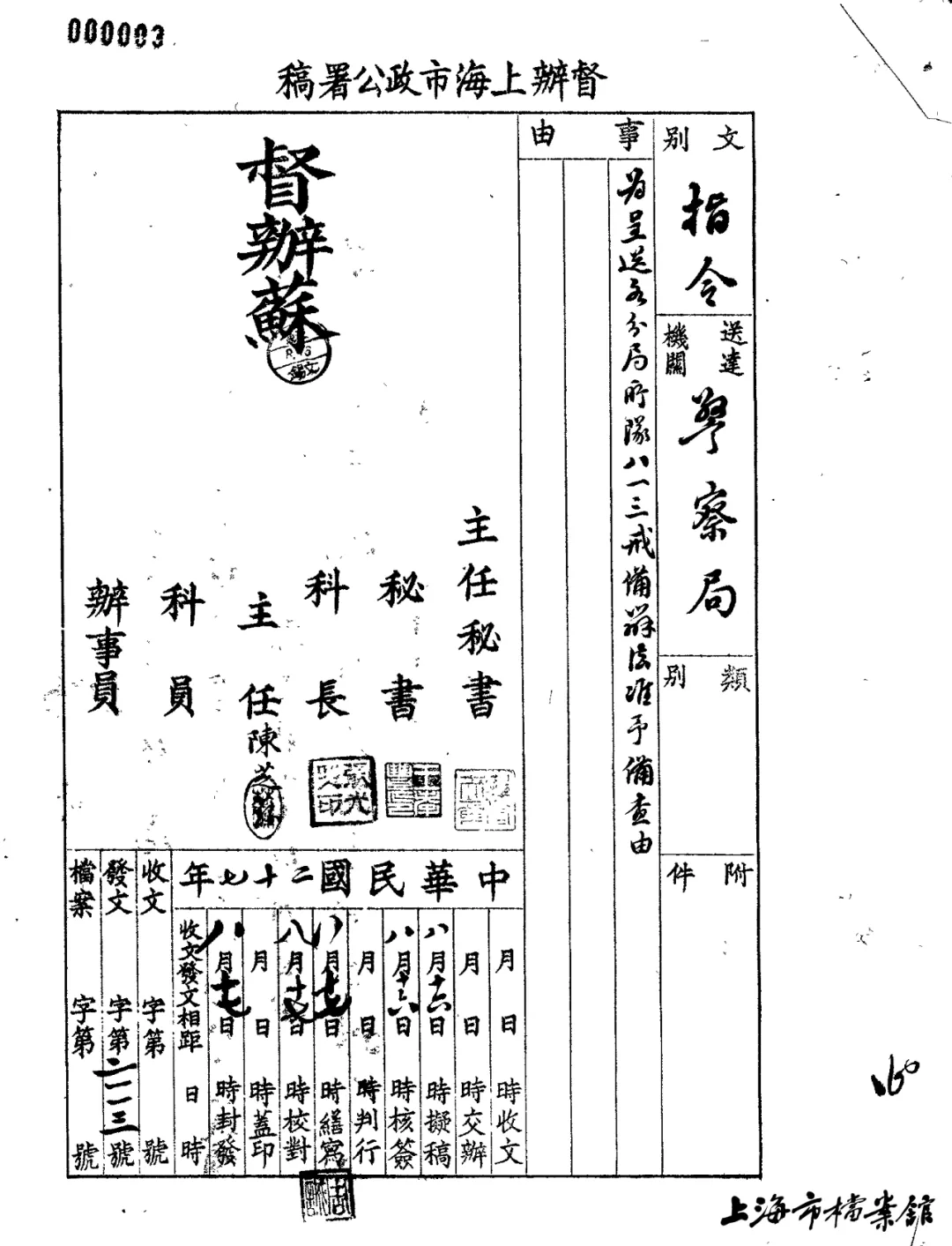 1938年,日伪督办上海市政公署关于“八一三”戒备的相关文件(上海市档案馆藏)