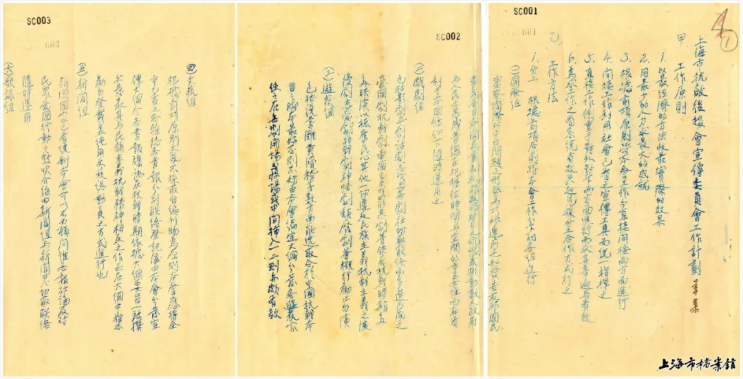 上海市抗敌后援会宣传委员会工作计划草案(上海市档案馆藏)