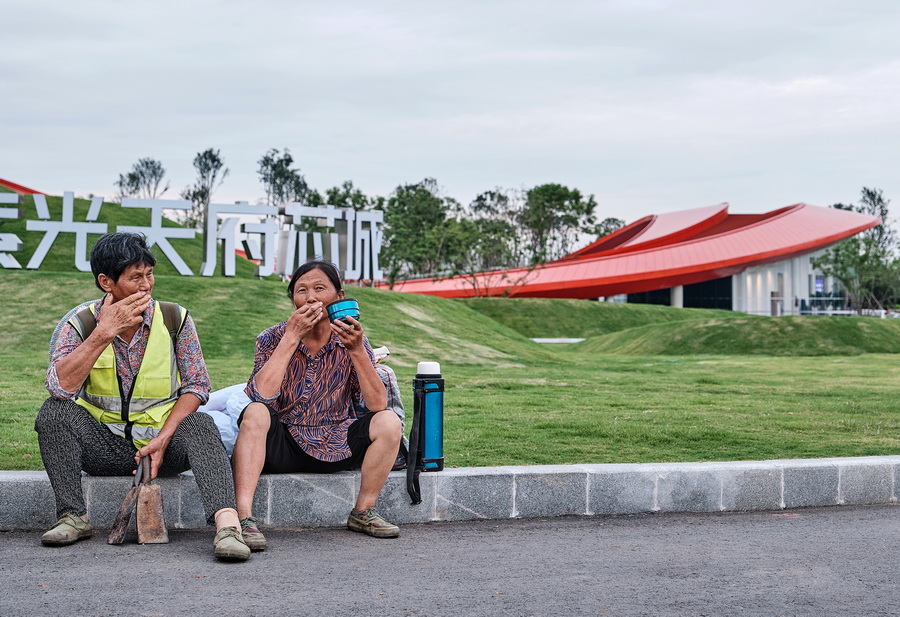 Powerhouse Company设计的“智慧之环”坐落在在中国活力大都市成都的新区主干道上,它有科技展馆和接待中心两大功能分区,明显的美学吸引力和文化功能让它成为了一座标志性建筑,与此同时,它的流线形结构还创造了一个大气的公共空间——起伏的屋顶步道。这使“智慧之环”成为了一个高度可达且平易近人的地标,而不是一个只可远观的符号。它邀请人们来探索它,并可成为他们日常散步或慢跑活动的一部分。