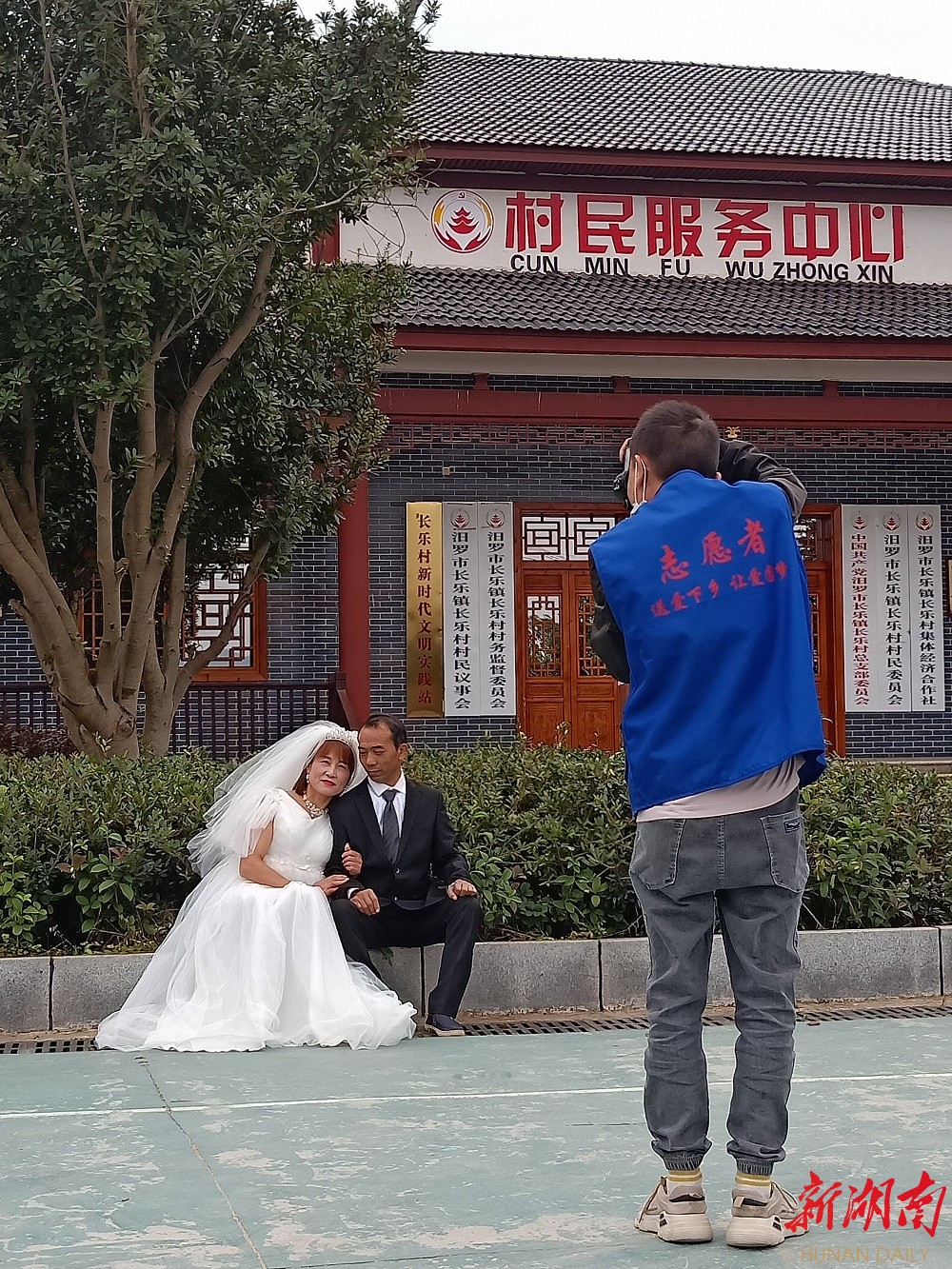 新湖南客户端10月26日讯(通讯员 李为)10月26日,恰逢重阳,岳阳市党外知识分子联谊会的杨超,带领“送爱下乡·让爱圆梦”公益摄影活动的志愿者们来到汨罗马桥村,为这里的大爷大妈免费拍摄结婚纪念照,与老人们共同欢度重阳佳节。