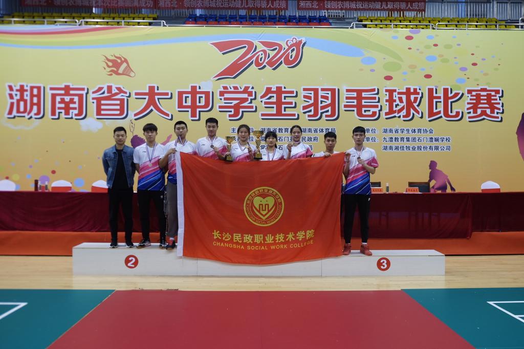 10月24日至11月1日,由湖南省教育厅、湖南省体育局主办的2020年湖南省大中学生羽毛球比赛在石门县全民健身活动中心隆重举行,来自全省50所高校、中学代表队,运动员、教练员共计600余人参加了本次比赛。其中,长沙民政职院羽毛球队在领队陈磊、教练员翁优的指导下,顽强拼搏,表现出色,共摘得3金1银3铜,位居金牌总数第一。