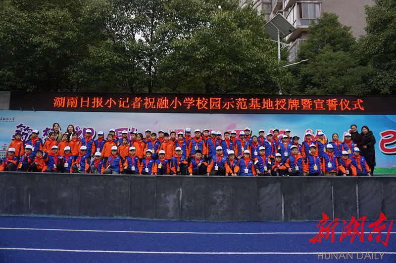 新湖南客户端11月30日讯(通讯员 蒋剑辉)11月30日,湖南日报小记者校园示范基地授牌仪式在衡阳市高新区祝融小学隆重举行。该校69名湖南日报小记者进行了集体宣誓。