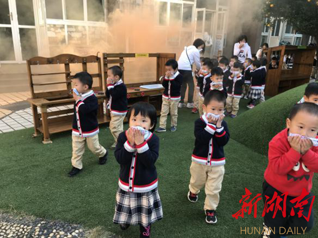 新湖南客户端11月13日讯(通讯员 张萍) 幼儿园的安全工作重于泰山,为进一步增强幼儿消防安全意识,提高自救防范的能力,做到在发生火灾时,保证自己的生命安全。11月12日,长沙市开福区伍家岭街道科大佳园社区联合国防科技大学附属第一幼儿园特别邀请湖南省普消消防学校的杨东升教官来到幼儿园开展消防安全系列活动。“演习就是战场”,此次演习旨在培养孩子掌握正确的逃生要领。
