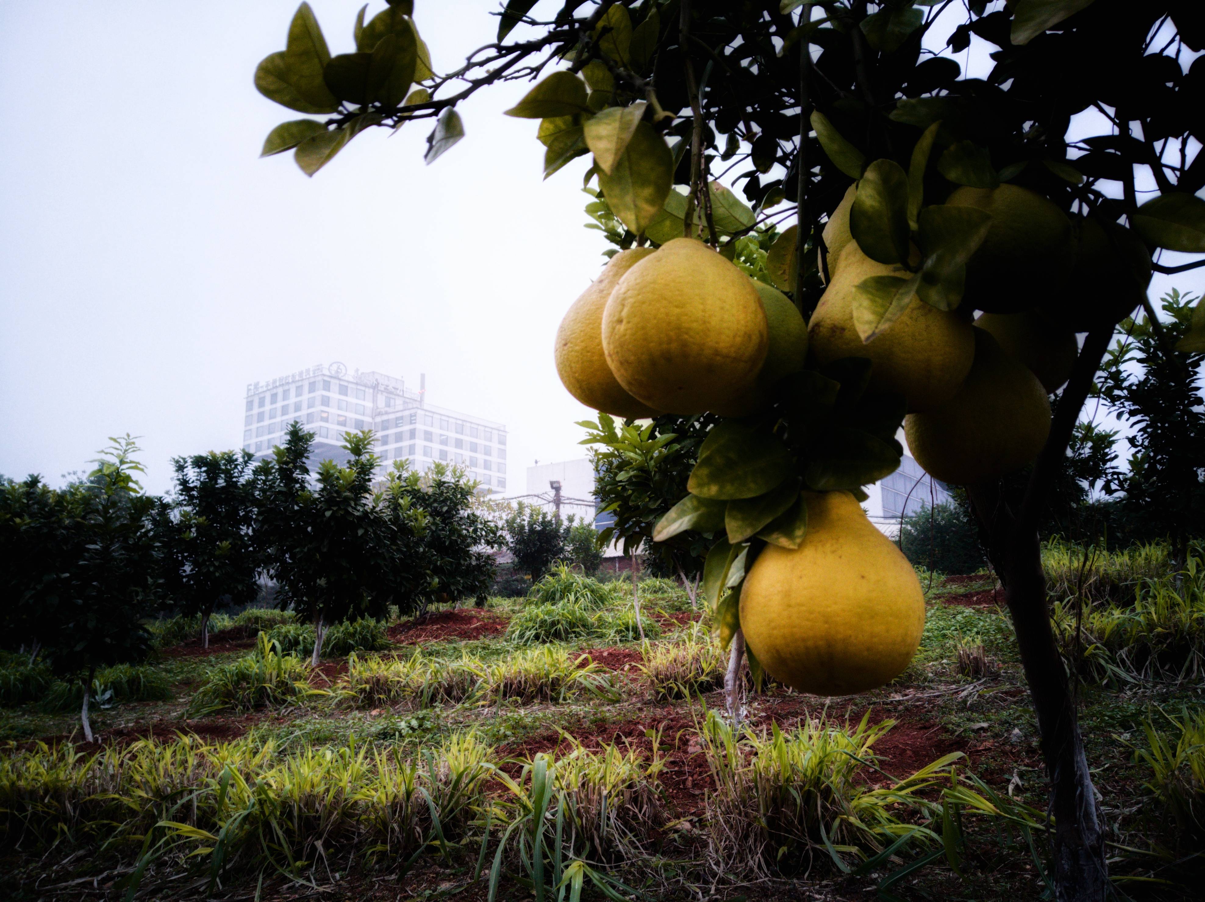 观察笔记:瘦弱的躯干承载着硕果累累,枝叶在冷风中舞蹈摇曳,尤显它的坚韧与刚劲。源自郴州的沙田柚,种植在远大城,既是别致的工业园区景色,其果肉也晶莹温润、多汁柔软,颇具甜嫩清新之口感,实乃正宗原生态有机果实。