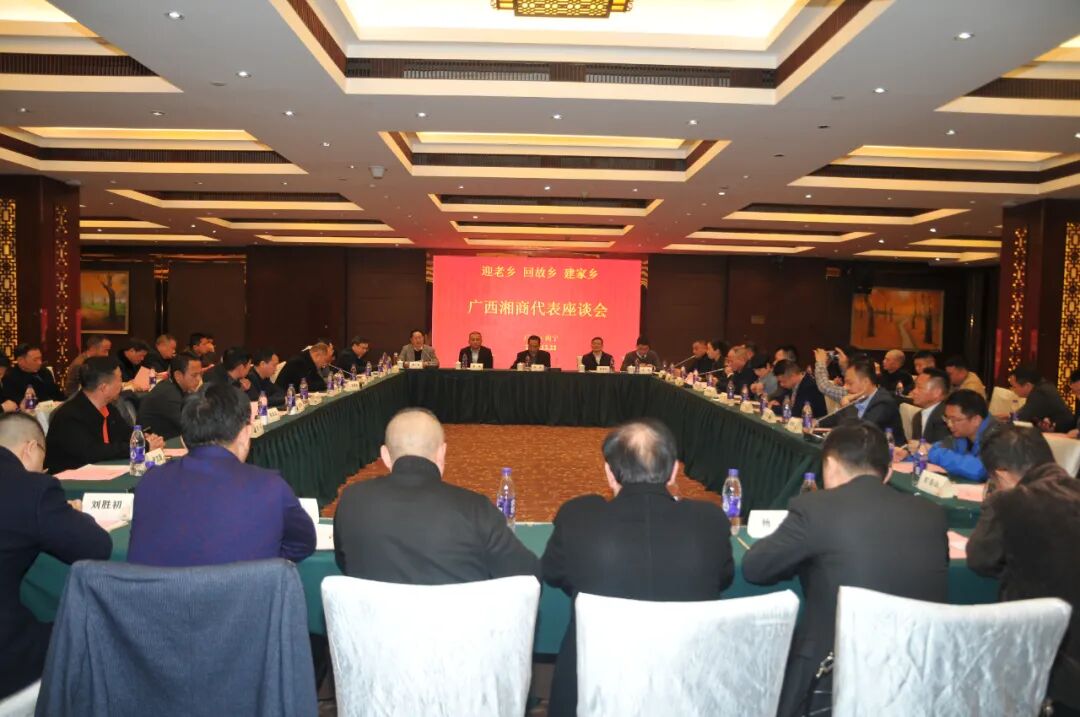 会上,广西湘商联合会会长贵仁勇、柳州湖南商会会长冯旭林、北海湖南商会会长申晓宏,广西湘商联合会执行会长周光明、刘华安、梁敏、副会长杨罗生,中农批电商(永州)农旅开发建设有限公司黄顺东等8位企业家先后发言,介绍所在商会及企业情况,畅谈返湘投资感受,一致认为家乡湖南的营商环境越来越好,返湘投资的信心越来越足,尤其是省委省政府高度重视异地商会建设,每年通过召开新春会长联谊会等形式听取商会负责人和湘商代表的意见建议,通过举办湘商大会、全国湖南商会会长联席会议、“迎老乡、回故乡、建家乡”座谈会等方式开展重大招商活动,为广大湘商参与新湖南建设塔建了平台、提供了舞台。大家表示,要继续积极响应省委、省政府号召,深度参与“迎老乡、回故乡、建家乡”行动,回报家乡、建设桑梓。同时,就如何发挥商会作用、利用好东盟博览会平台、降低返湘投资成本等提出了意见建议。