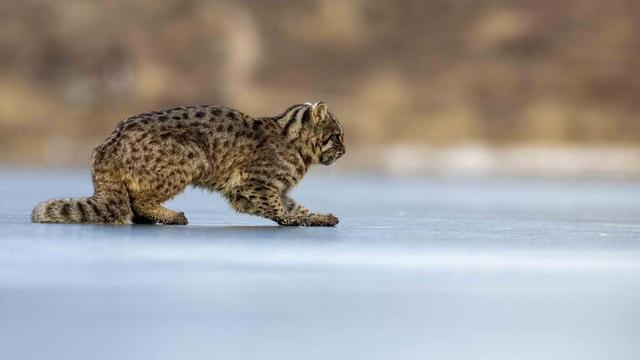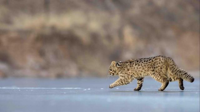 惬意!野生豹猫现身陕北黄土高原