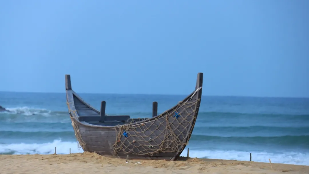 画面,是初升的太阳、藏蓝色的海面、泛着金光的浪花。