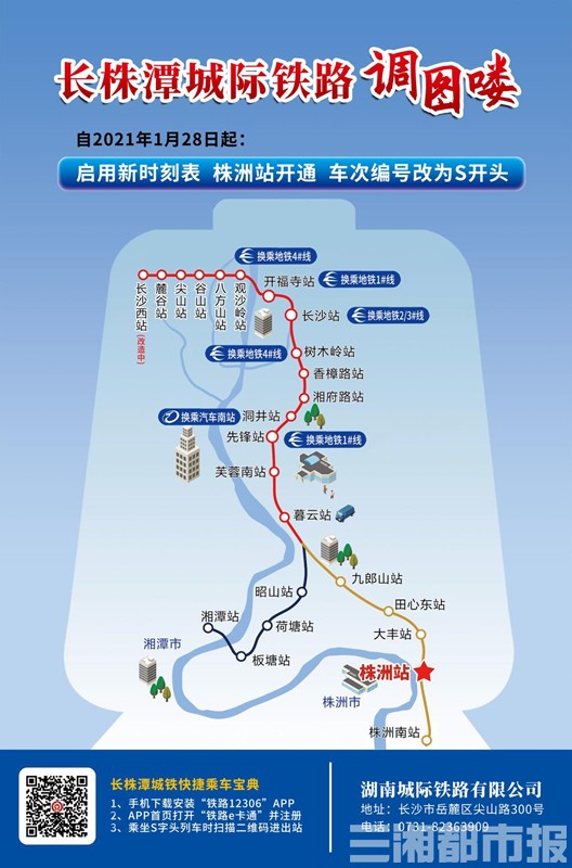 三湘都市报·新湖南客户端1月27日讯(记者 和婷婷)今天,记者湖南城际铁路有限公司获悉,为满足长株潭三市人民和广大旅客春运出行需求,长株潭城际铁路同步启用新的列车运行图。